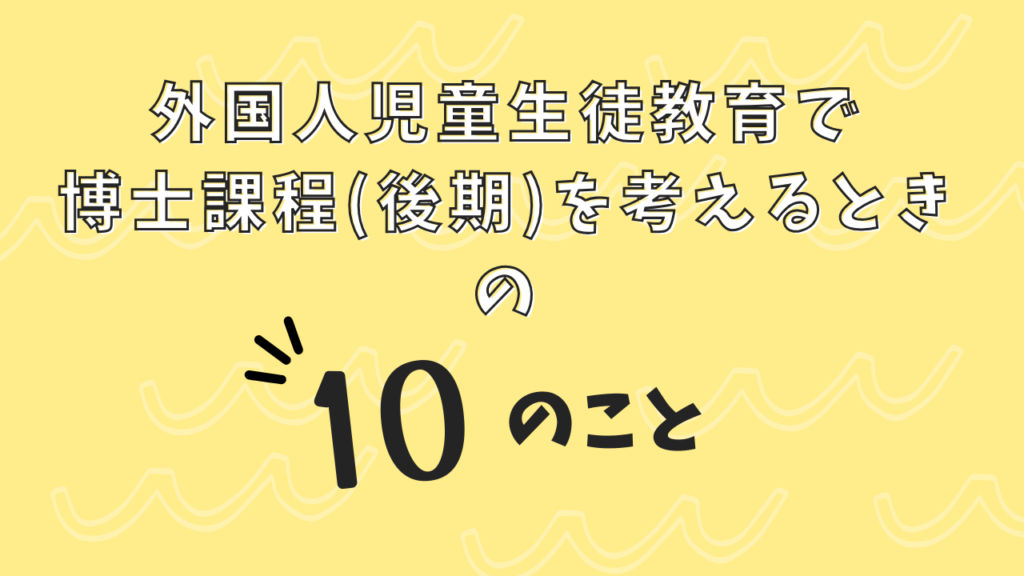 外国人児童生徒教育で博士課程(後期)を考えるときの10のこと